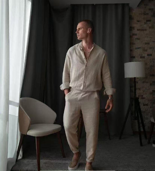 Men's Set – Linen Blend – Relaxed Fit – Button-Up Shirt and Slim Pants