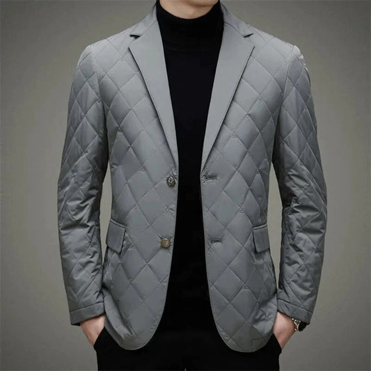 Men's Quilted Jacket – Slim Fit – Diamond Pattern – Button Closure – Notch Lapel