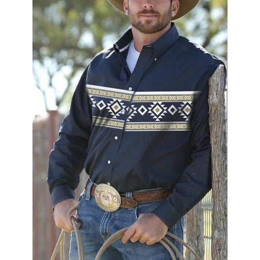Men's Shirt with Long Sleeves – Cotton – Regular Fit – Checked Collar Inside – Button Closure