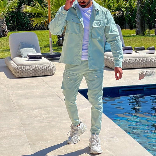 Men's Utility Jacket and Cargo Pants – Structured Fit – Multi-pocket Design – Casual Set