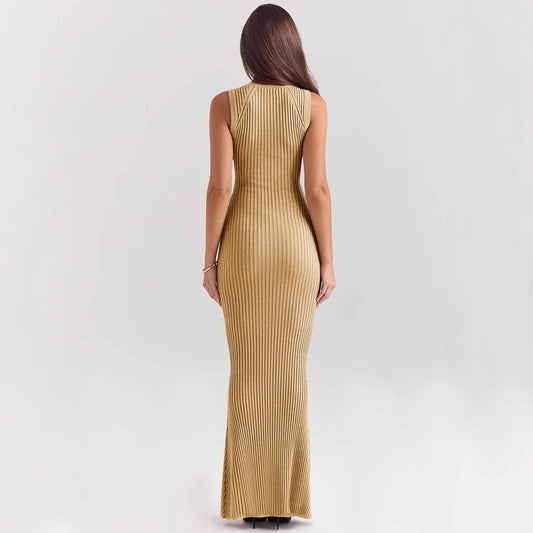 Dress for Women – Sleeveless Tight Fit – Open Back – Knitted Ribbed Structure