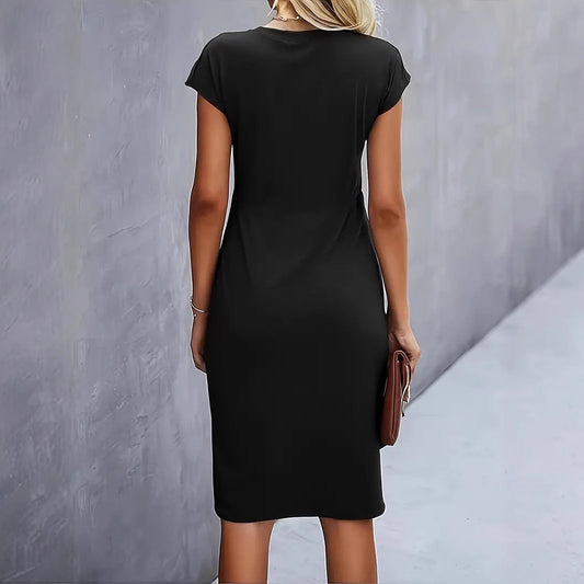 Dress for Women – Slim Fit – Round Neck – Knee Length – Side Tie Detail