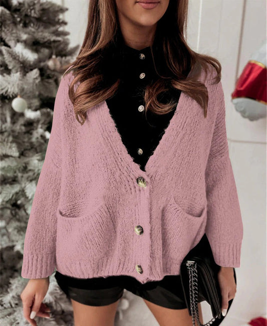 Women's Cardigan – Oversized Fit – Knitted – V-neck – Buttons – Relaxed Style