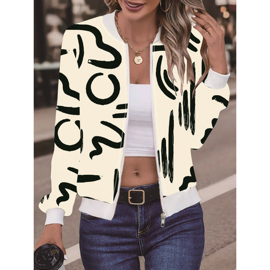 Women's Jacket – Cropped Fit – Digital Pattern – Zipper Closure – Ribbed Edges