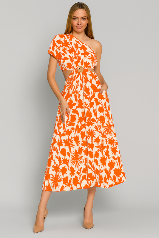 Women's Jumpsuit – One Shoulder – Relaxed Fit – Waist Belt – Breathable Fabric