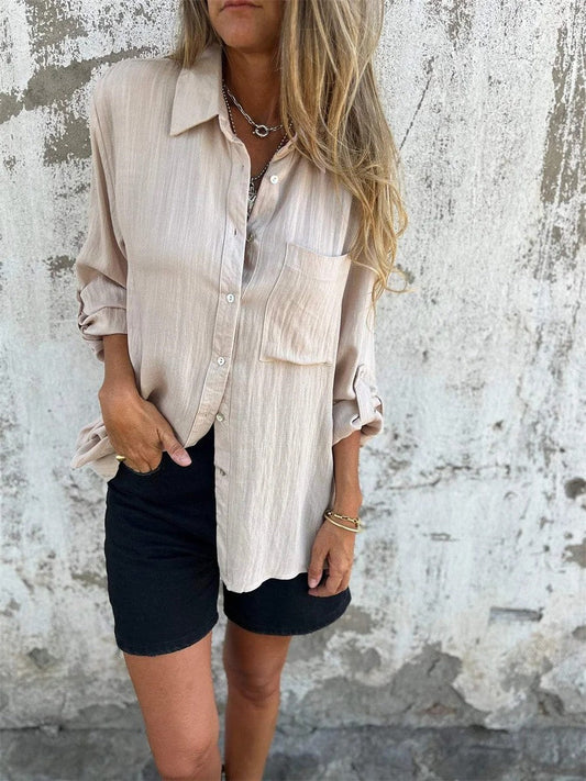 Women's Shirt with Long Sleeves – Relaxed Fit – Breathable Fabric – Button-Up – Chest Pocket