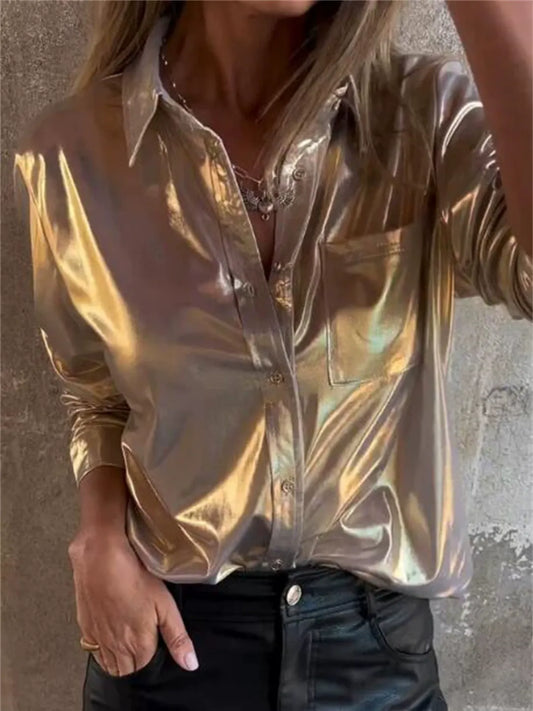 Women's Shirt – Faux Leather – Relaxed Fit – Long Sleeves – Chest Pocket