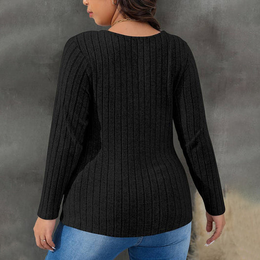 Women's Wrap Top – Ribbed Knit Fabric – Slim Fit – V-Neckline – Long Sleeves