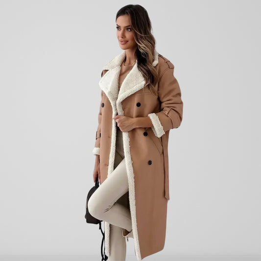 Hazel Leather Oversized Shearling Lined Coat | Midi Length Coat