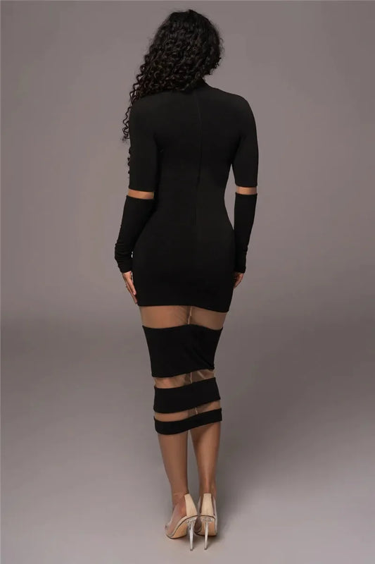 Dress for Women – Tight Fit – Midi Length – Long Sleeves – Cut-out Details