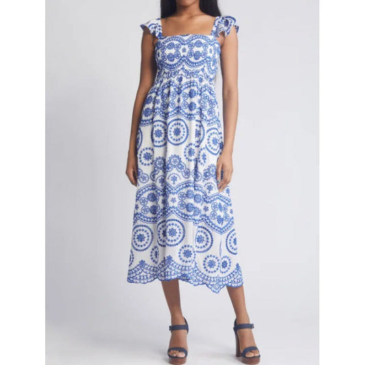 Dress woman maxi – smocked bodice – adjustable tie straps – floral ruffle skirt