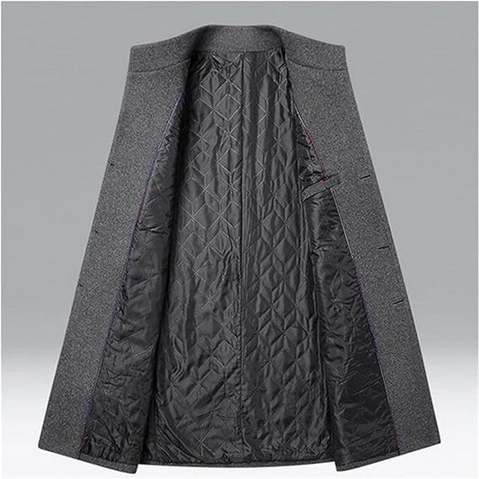 Men's Coat – Wool Blend – Tailored Fit – High Collar – Knee Length