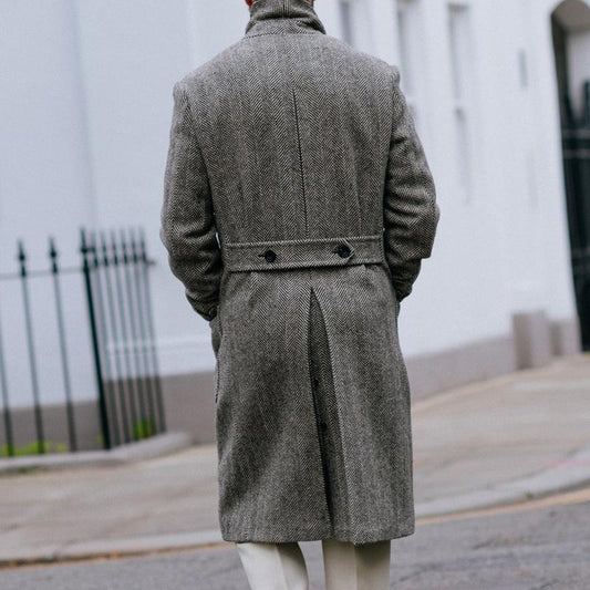 Men's Coat - Double-Breasted Wool Blend - Herringbone Pattern - Tailored Fit