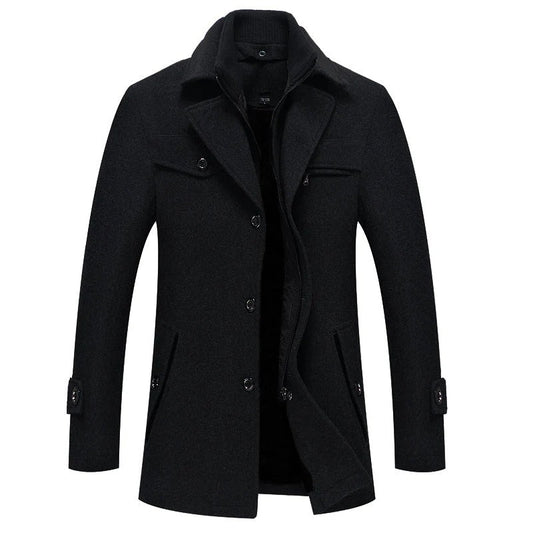 Men's Coat – Tailored Fit – Wool Blend – High Collar – Button Closure