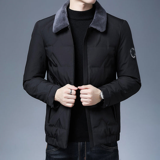Men's Down Jacket – Slim Fit – Short Length – Removable Fur Collar – Insulating Fabric