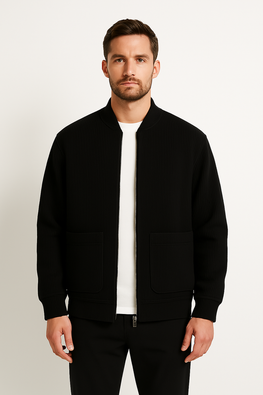Men's Jacket – Relaxed Fit – Zipper – V-neck – Structured Ribbed Design