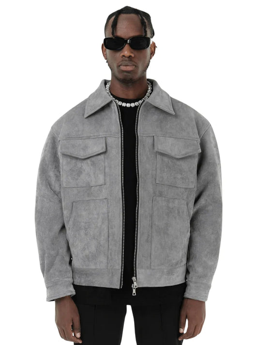 Men's Jacket – Oversized Fit – Suede Look – Zipper – Chest Pockets – Classic Collar