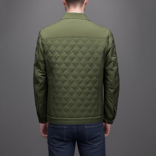 Men's Quilted Jacket - Light Padding - Diamond Pattern - Comfortable and Stylish