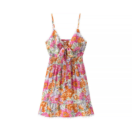 Dress for Women – A-line Mini Length – Spaghetti Straps – Floral Print – Ruffle Hem