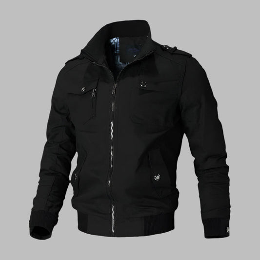 Men's Bomber Jacket – Classic Fit – Windproof Fabric – Zipper Pocket – Ribbed Details