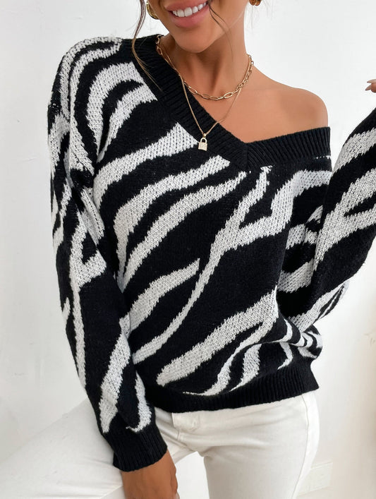 Teresa Cropped Sweater | V-Neck Zebra Print Sweater