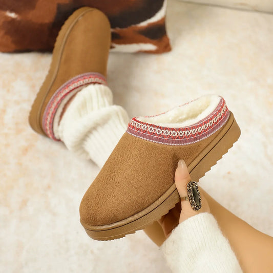 Women's Snow Boots – Suede Look – Lined – Low Model – Non-Slip Sole – Embroidered Detail