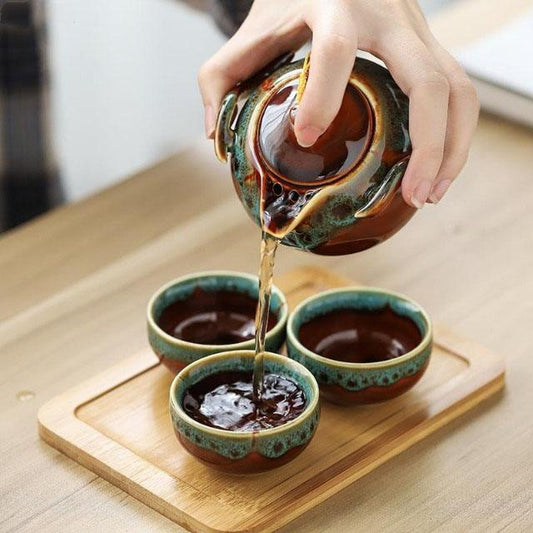 Traditional Ceramic Travel Tea Set With Bamboo Tools