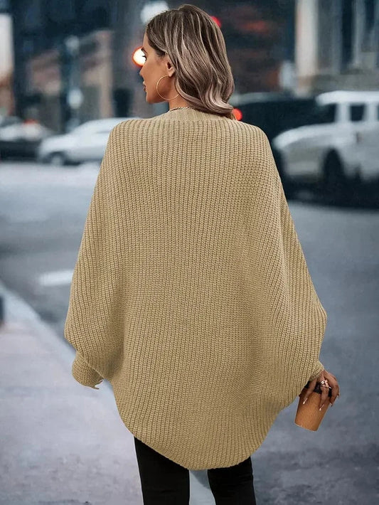 Women's Cardigan - Wool - Oversized Fit - Chunky Knit - Open Front with Buttons