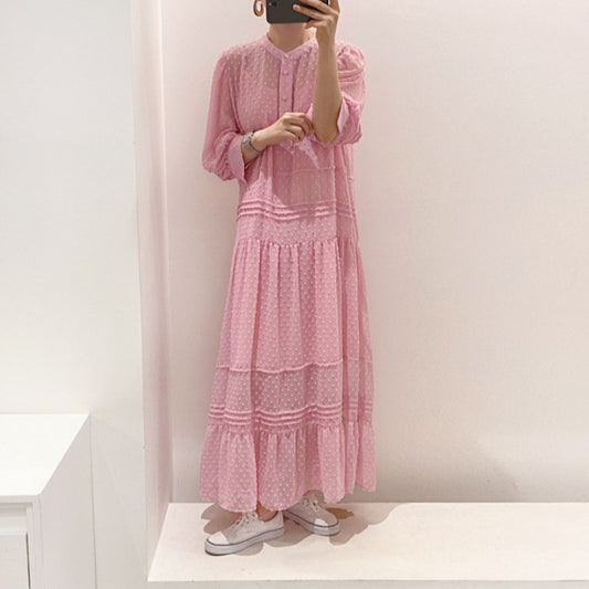 Maxi Dress for Women - Elegant Layered Design - Soft Pin Dot Pattern