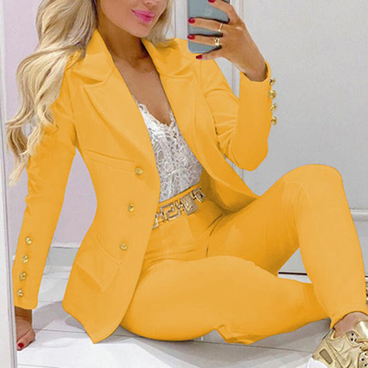 Women's Blazer Set – Elegant Slim Fit – Decorative Buttons – Tailored Design
