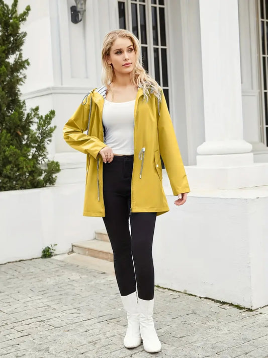 Women's Rain Jacket - Waterproof with Hood - Adjustable Fit - Practical Pockets