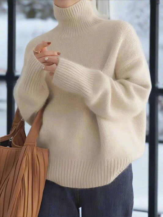 Women's High-Neck Sweater - Wool Blend - Oversized Fit - Soft Knitted Comfort