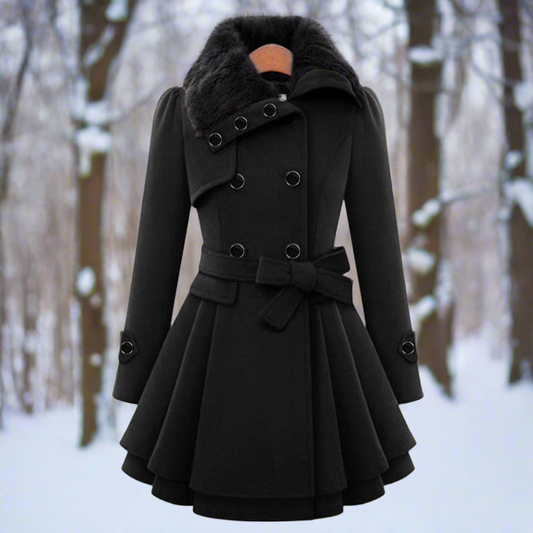 Women's Trench Coat – Wool Blend – Double-Breasted – Faux Fur Collar – Belted Waist