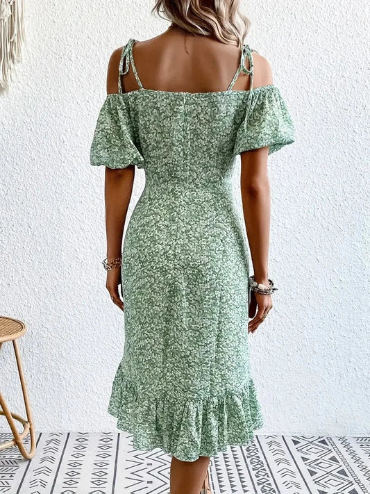 Dress for Women – Off-Shoulder – Puff Sleeve – Ruffle Details – Wrap Design