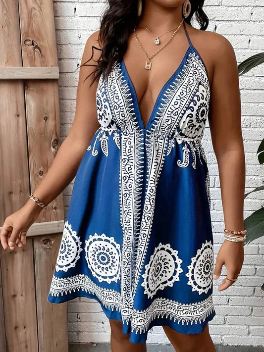 Women's Dress - Halterneck with Thin Straps - Light and Airy - Bohemian Pattern