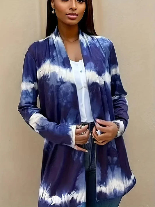 Women's Cardigan – Open Front – Soft Fabric – Long Sleeved – Relaxed Fit – Tie-Dye Pattern