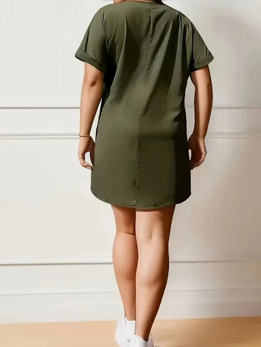Women's Dress – Loose Fit – V-Neck – Short Sleeves – Light and Airy Design
