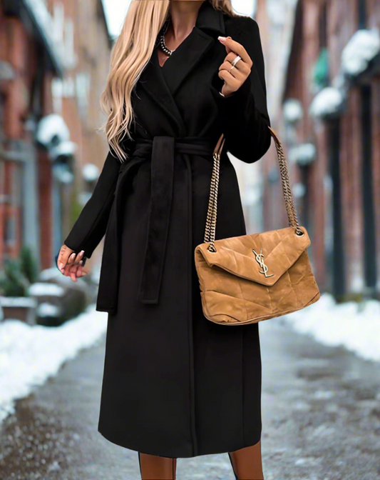 Women's Trench Coat - Classic Wool Blend - Tie Belt - Elegant Tailored Fit