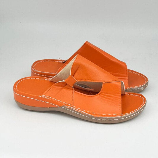 Women's Sandals - Leather - Slip-on Comfort - Open Toe - Stylish Cut-out Pattern