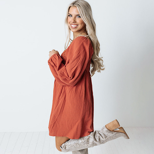 Women Mini Dress - Off-Shoulder - Lace & Embroidery - Loose Fit - Bohemian Style