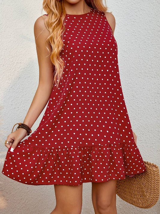 Women's Short Dress - A-line Fit - Sleeveless - Polka Dot Pattern - Ruffle Hem