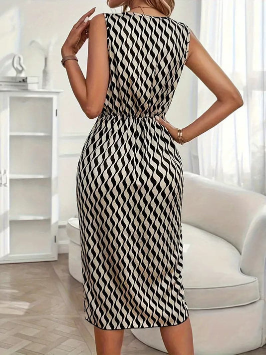 Women's Wrap Dress - Sleeveless V-neck - Tulip Hem - Elegant Floral Pattern