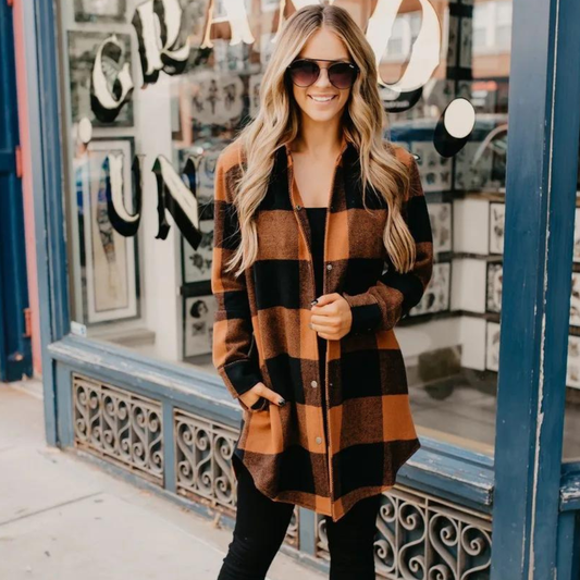 Women's Shirt Jacket - Plaid Flannel - Oversized Fit - Long Sleeves - Button Closure