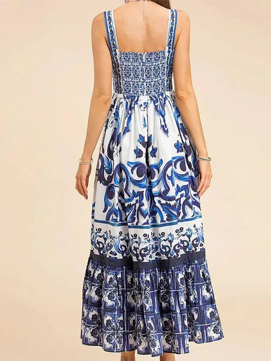 Women's Dress - Sleeveless with Wide Straps - Flattering Fit - Patterned Flowy Skirt