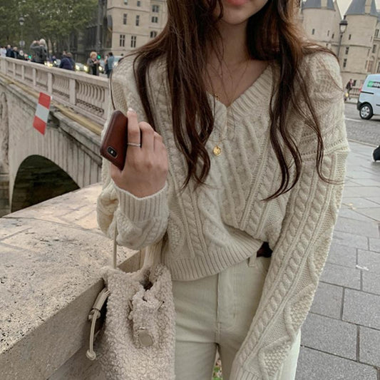 Women's Knitted Sweater - V-neck - Relaxed Fit - Long Sleeves - Soft and Comfortable