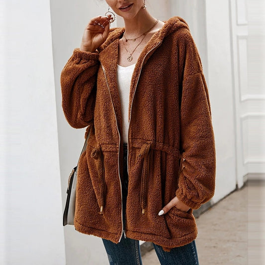Women's Teddy Jacket - Soft Plush - Hood & Zipper - Oversized Fit - Pockets