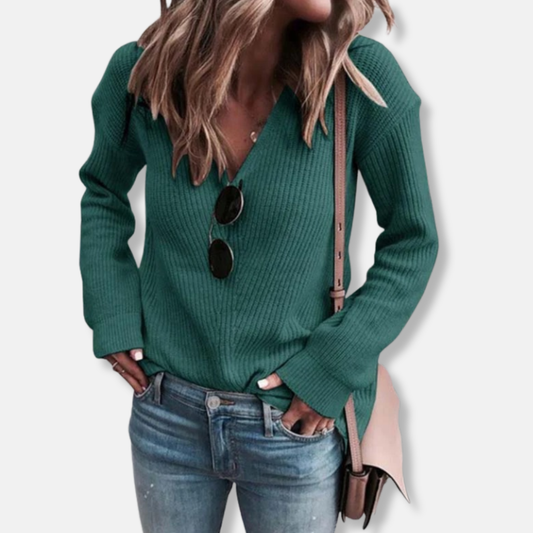 Veronica V-Neck Sweater | Ribbed Relaxed Fit Sweater