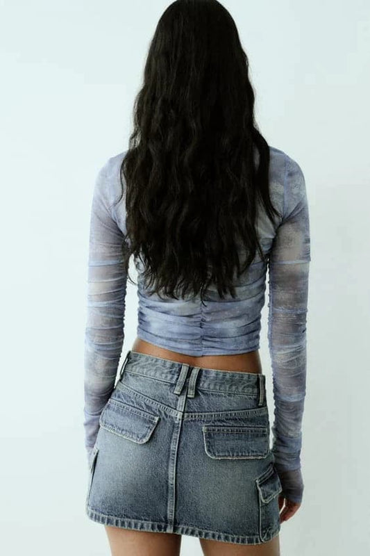 Women's Denim Skirt - Mini Length - Cargo Design with Front Pockets - Casual and Trendy