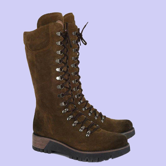 Women's Knee-High Lace-Up Boots – Suede Leather – Robust Sole – Zipper – Comfortable Fit