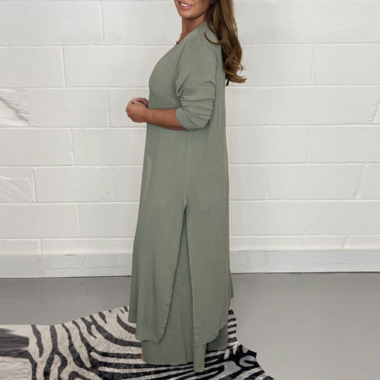 Women's Maxi Dress – Airy Fabric – V-neck – Long Sleeves with Wide Cuffs